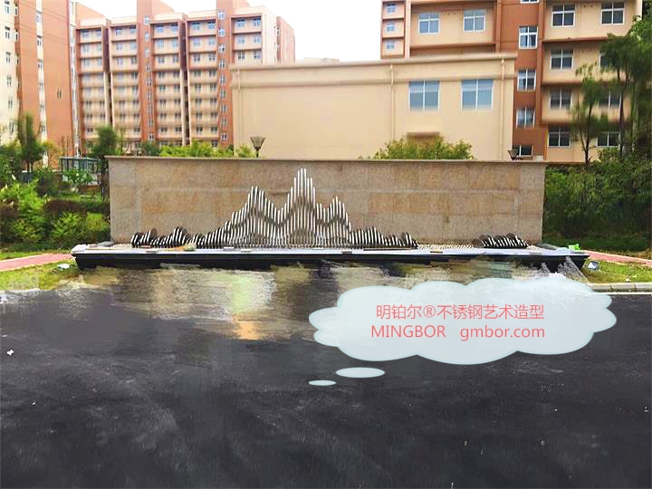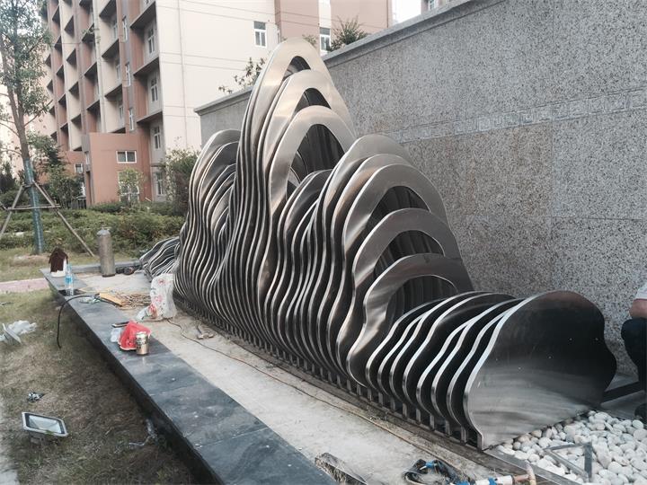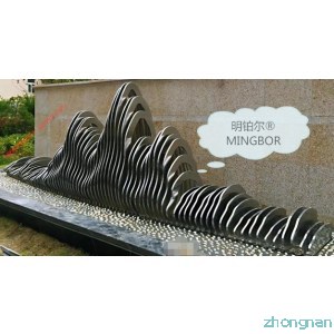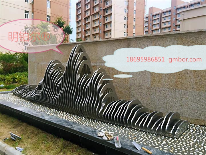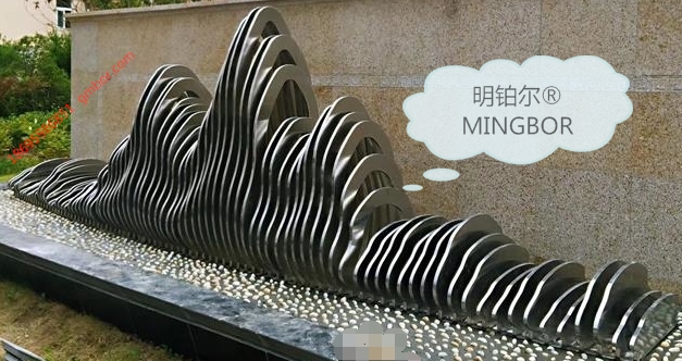 南陽(yáng)市政府安置小區(qū) 設(shè)計(jì)定制的明鉑爾?不銹鋼藝術(shù)假山造型