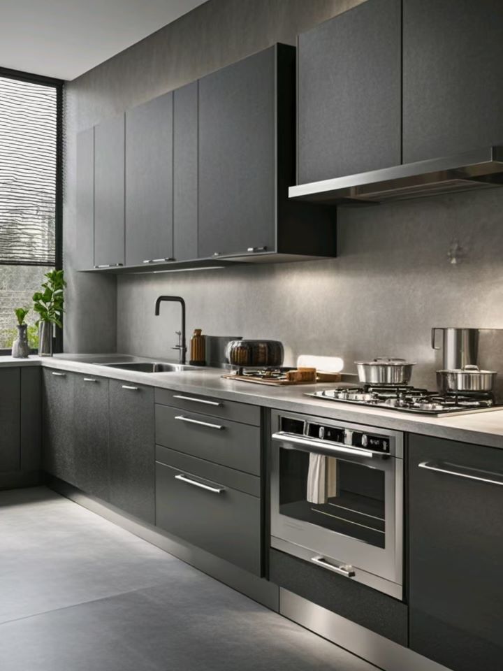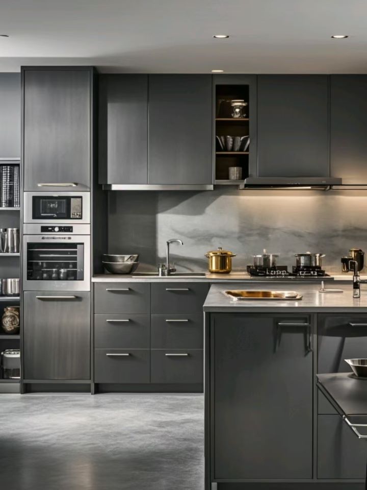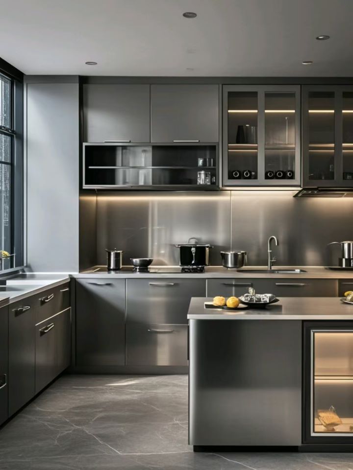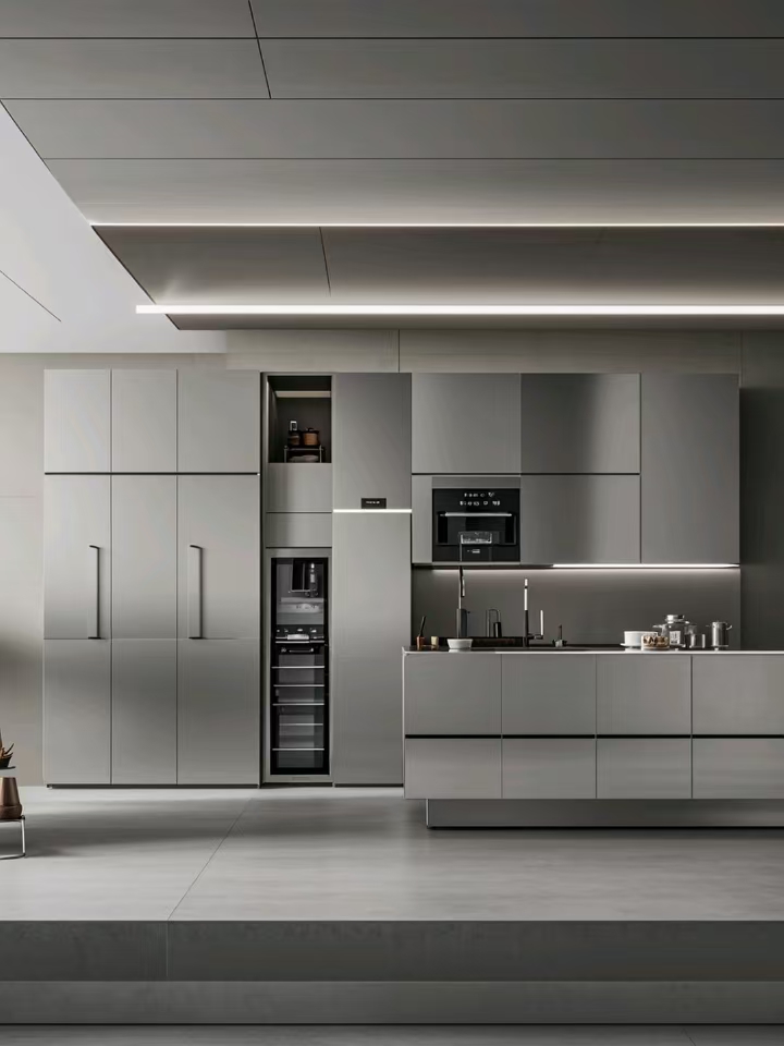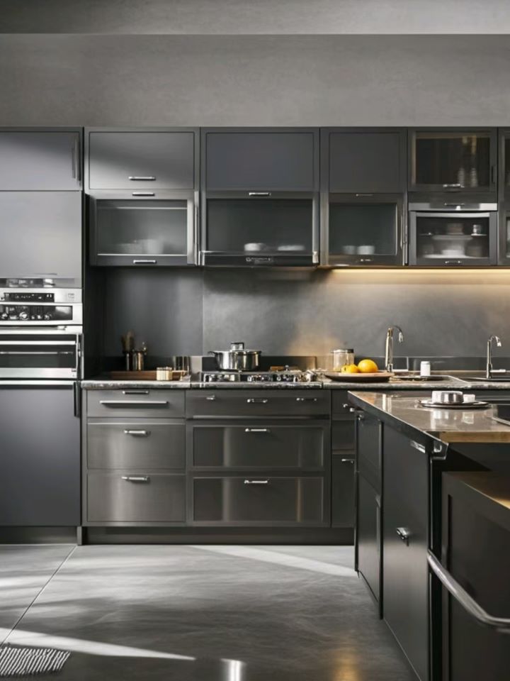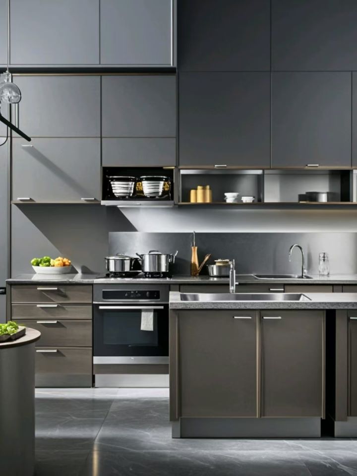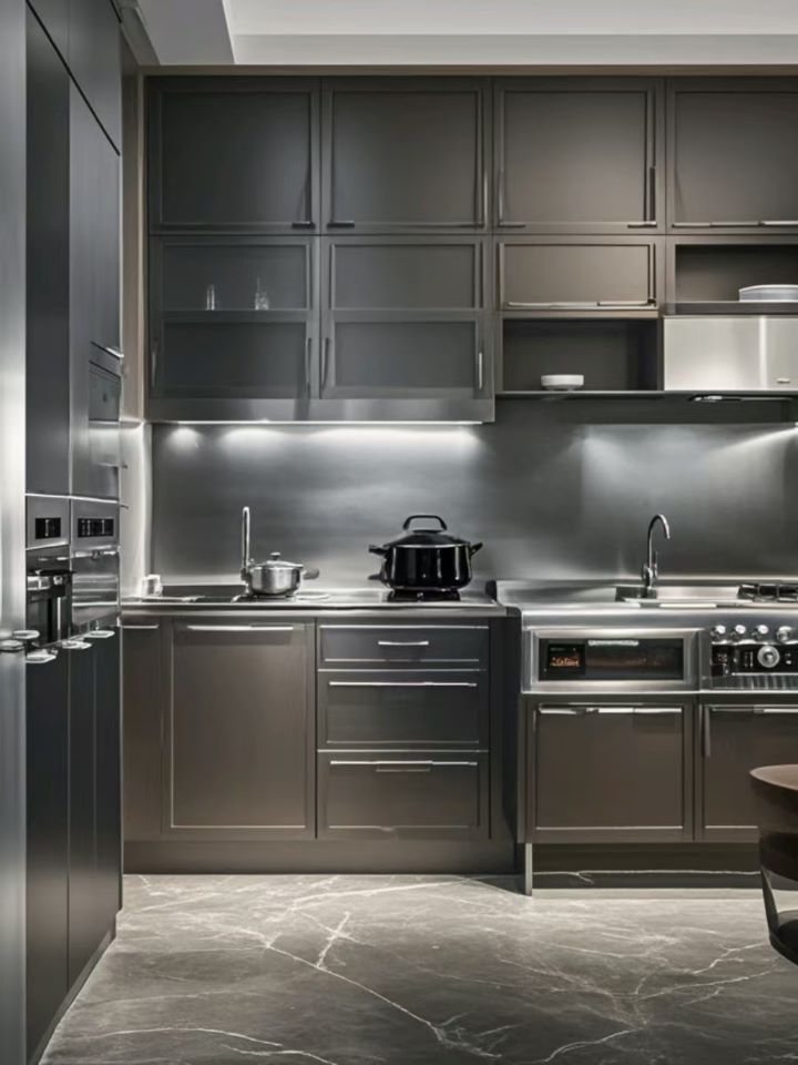 - 結(jié)合了不銹鋼櫥柜的耐用性和多種功能模塊,如烤箱、洗碗機(jī)、微波爐等嵌入式電器。