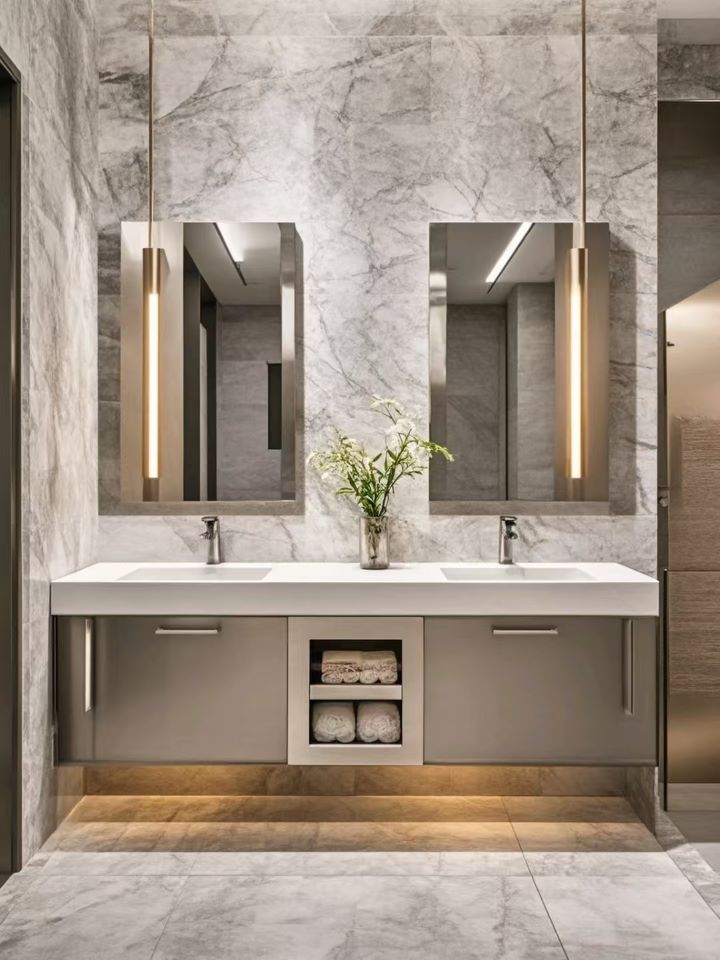 其設(shè)計風(fēng)格簡約大氣,線條流暢,既展現(xiàn)出現(xiàn)代時尚的美感,又能與各種裝修風(fēng)格完美融合。無論是簡約現(xiàn)代風(fēng)、北歐風(fēng)還是豪華歐式風(fēng),明鉑爾浴室櫥柜都能成為浴室中的點睛之筆。