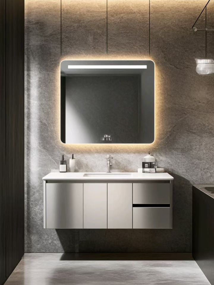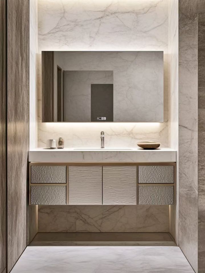 在功能方面,明鉑爾更是考慮周全。豐富的收納空間,讓你的洗漱用品、化妝品等都能找到合適的歸處,使浴室告別雜亂,變得井井有條。抽屜與柜門的開合順暢,五金配件質(zhì)量上乘,確保使用的便捷性與持久性。