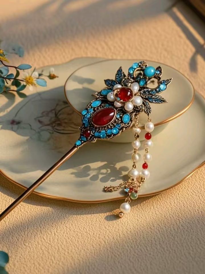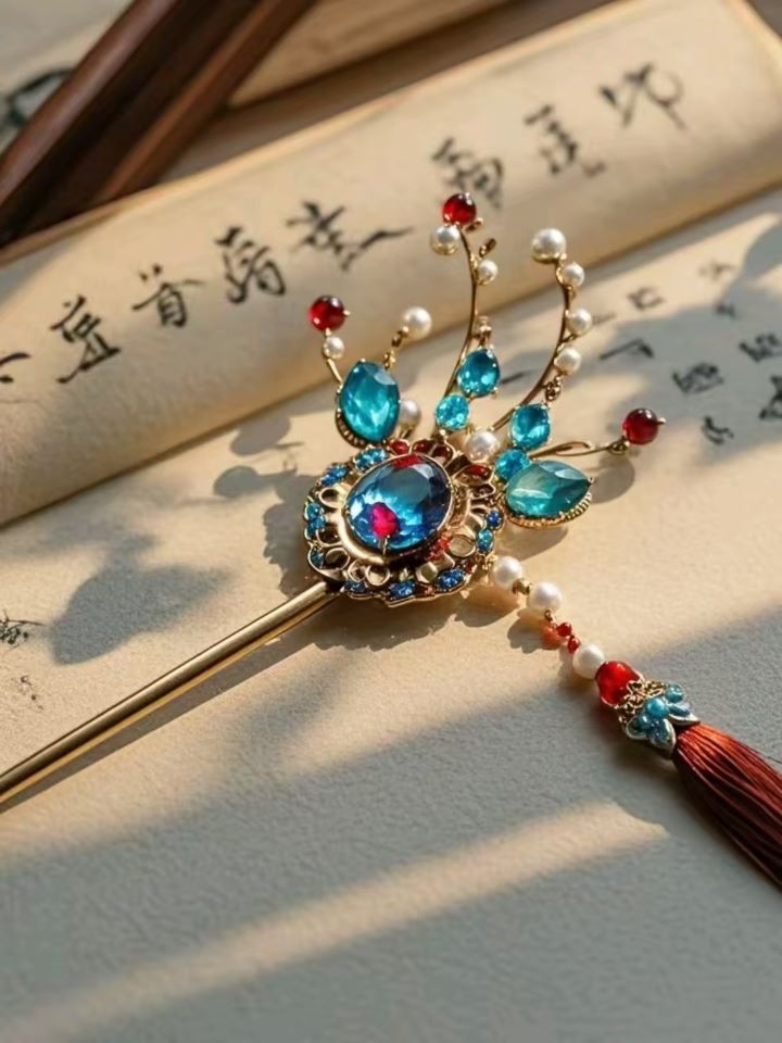 華,散發(fā)著柔和溫潤的光澤。此簪無論是斜插于發(fā)間,伴青絲搖曳,彰顯東方女性的溫婉與優(yōu)雅,還是作為收藏珍品,置于錦盒之中,都承載著千年古風(fēng)的獨(dú)特魅力,讓人不禁沉醉于那如夢似幻的古典情境之中。