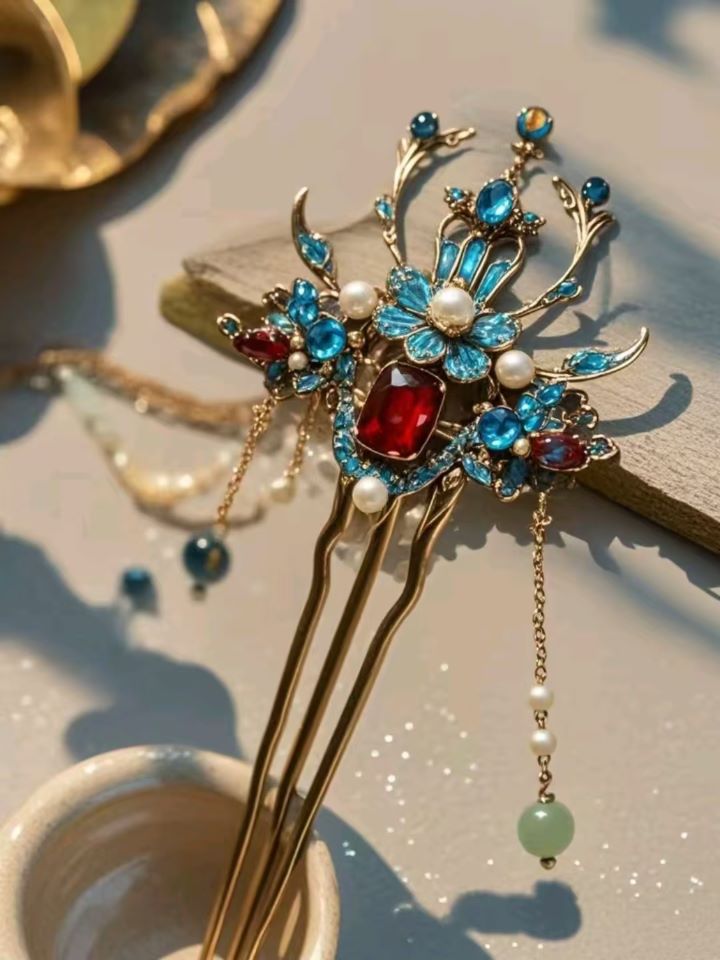 這款系列不銹鋼古銅色古風(fēng)簪子,將現(xiàn)代材質(zhì)與古典韻味完美融合。簪身呈古銅色澤,仿若歲月沉淀的痕跡,不銹鋼的質(zhì)地又賦予其堅(jiān)韌與耐用。簪頭精心雕琢,或有紅寶石的明艷熾熱,似燃燒的晚霞,嬌艷欲滴;或鑲嵌藍(lán)寶石,如深邃夜空的星子,幽藍(lán)深邃,散發(fā)神秘冷艷之光;又或以珍珠點(diǎn)綴,圓潤潔白的珍珠恰似月光凝